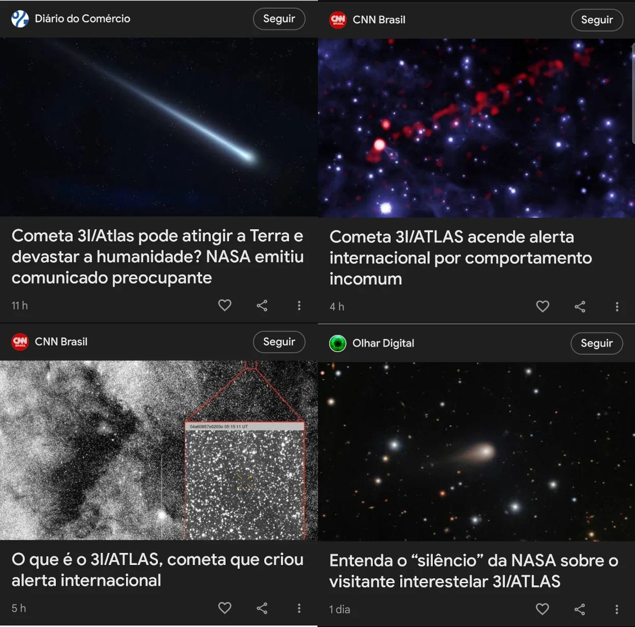 O jornalismo digital, especialmente em portais que dependem de cliques e tempo de permanência em página, favoreceu a transformação de hipóteses e análises preliminares em “notícias definitivas”. Embora não exista ainda um levantamento sobre a comunicação científica durante agosto e outubro de 2025, para o observador atento é fácil perceber a desproporcionalidade do volume de matérias sobre o 3I/ATLAS em grandes portais norte-americanos, europeus e até mesmo brasileiros. E a maioria incluiu trechos em que a especulação foi apresentada de forma não qualificada, como se fosse fato comprovado, sobretudo nas chamadas garrafais.