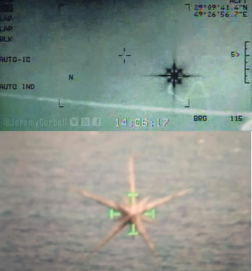 Num movimento típico de busca por engajamento e “comprovação” por associação, alguns perfis tentam associar uma das imagens ao vazamento de um vídeo de drone militar que ficou conhecido como “fantasma de Bagda”, ou “UAP lustre”, divulgado pelo cineasta e jornalista investigativo Jeremy Corbell, há mais de 2 anos. Naquela época, tratava-se de um objeto sem forma definida captado por câmera térmica de forma que o flare (reflexo) de intensidade da luz (ou radiação térmica) causava um efeito de “estrela” no registro.